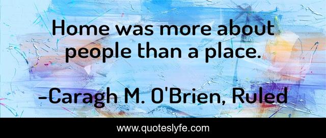 This page presents the quote "Home was more about people than a place.". Author of this quote is Caragh M. O'Brien, Ruled. This quote is about home, people,.
