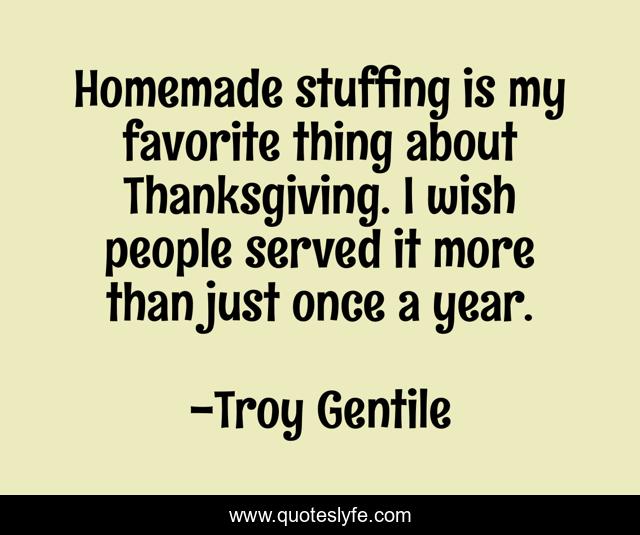 This page presents the quote "Homemade stuffing is my favorite thing about Thanksgiving. I wish people served it more than just once a year.". Author of this quote is Troy Gentile. This quote is about wish, favorite, people,.