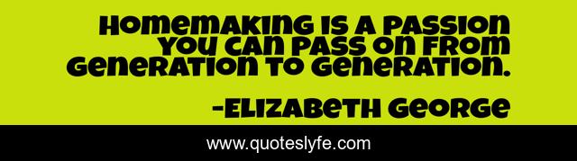 This page presents the quote "Homemaking is a passion you can pass on from generation to generation.". Author of this quote is Elizabeth George. This quote is about generation, god, elizabeth-george, christianity, homemaking, passion,.