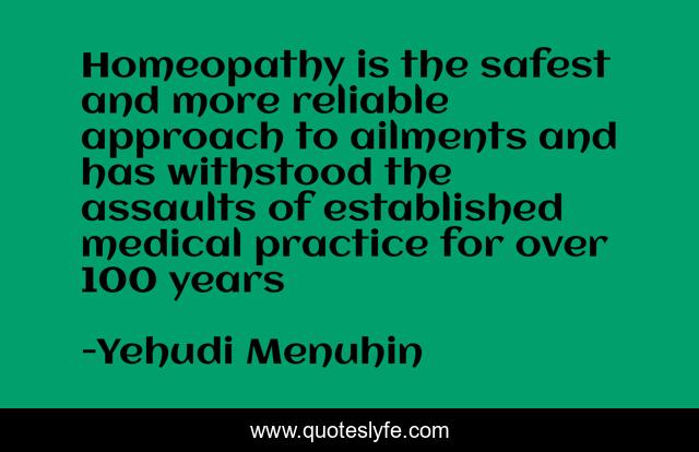 This page presents the quote "Homeopathy is the safest and more reliable approach to ailments and has withstood the assaults of established medical practice for over 100 years". Author of this quote is Yehudi Menuhin. This quote is about medicine, homeopathy,.