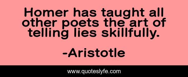 This page presents the quote "Homer has taught all other poets the art of telling lies skillfully.". Author of this quote is Aristotle. This quote is about lies, taught,.