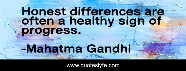 This page presents the quote "Honest differences are often a healthy sign of progress.". Author of this quote is Mahatma Gandhi. This quote is about healthy, progress, differences, honesty,.