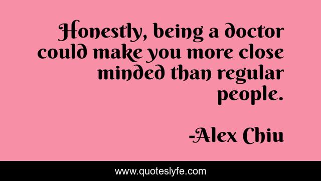 This page presents the quote "Honestly, being a doctor could make you more close minded than regular people.". Author of this quote is Alex Chiu. This quote is about doctor, people,.
