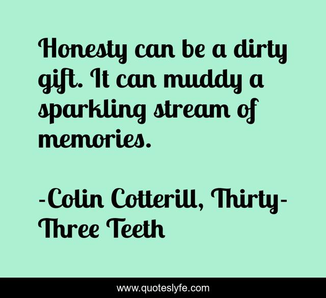 "Colin Cotterill, Thirty-Three Teeth Quotes." Quoteslyfe.com, 2025. Mon. 08 Dec. 2025. <https://www.quoteslyfe.com/quote/Honesty-can-be-a-dirty-gift-It-166226>.