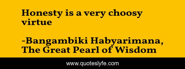 "Bangambiki Habyarimana, The Great Pearl of Wisdom Quotes." Quoteslyfe.com, 2025. Mon. 08 Dec. 2025. <https://www.quoteslyfe.com/quote/Honesty-is-a-very-choosy-virtue-166113>.
