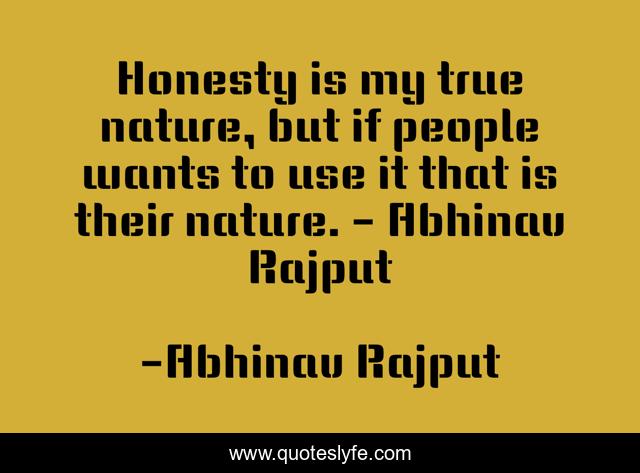 This page presents the quote "Honesty is my true nature, but if people wants to use it that is their nature. - Abhinav Rajput". Author of this quote is Abhinav Rajput. .