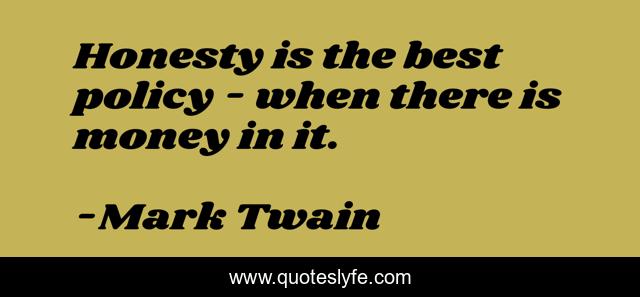 This page presents the quote "Honesty is the best policy - when there is money in it.". Author of this quote is Mark Twain. This quote is about policy, money, honesty,.