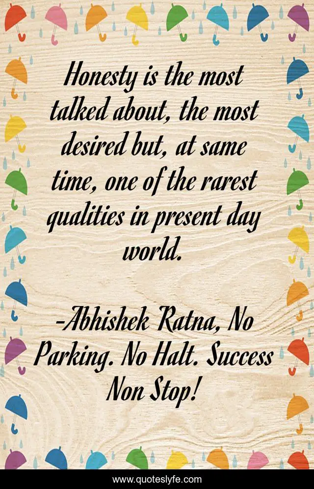 "Abhishek Ratna, No Parking. No Halt. Success Non Stop! Quotes." Quoteslyfe.com, 2025. Fri. 05 Dec. 2025. <https://www.quoteslyfe.com/quote/Honesty-is-the-most-talked-about-the-166095>.
