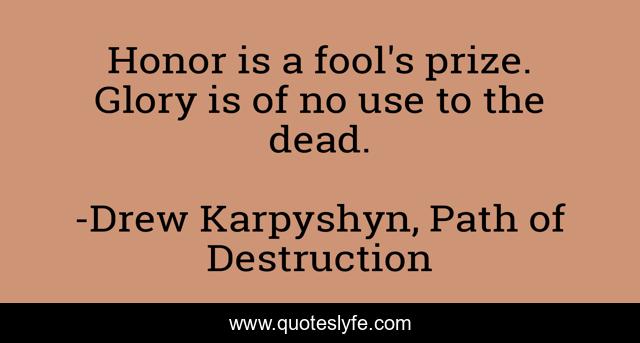 "Drew Karpyshyn, Path of Destruction Quotes." Quoteslyfe.com, 2025. Mon. 08 Dec. 2025. <https://www.quoteslyfe.com/quote/Honor-is-a-fool-s-prize-Glory-224993>.