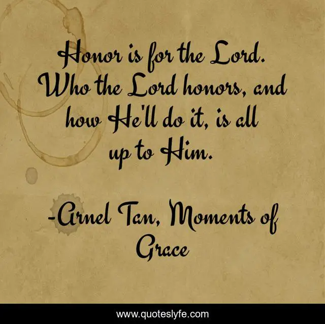 "Arnel Tan, Moments of Grace Quotes." Quoteslyfe.com, 2025. Sat. 06 Dec. 2025. <https://www.quoteslyfe.com/quote/Honor-is-for-the-Lord-Who-the-84722>.