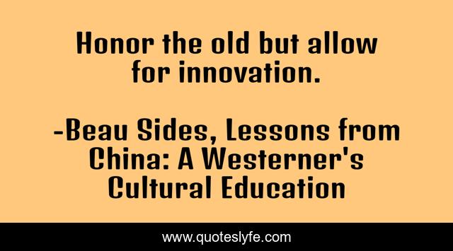 "Beau Sides, Lessons from China: A Westerner's Cultural Education Quotes." Quoteslyfe.com, 2025. Mon. 08 Dec. 2025. <https://www.quoteslyfe.com/quote/Honor-the-old-but-allow-for-innovation-161174>.