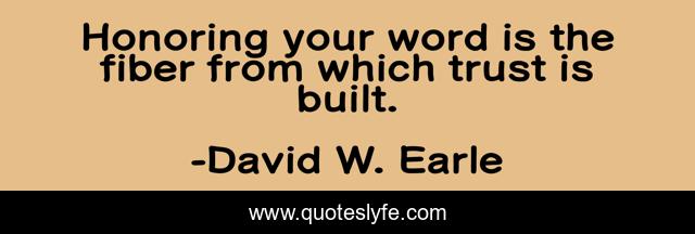 This page presents the quote "Honoring your word is the fiber from which trust is built.". Author of this quote is David W. Earle. This quote is about families, recovery, chaos, dysfunctional-families, dysfunctional, love, self-esteem-honor, trust, affection,.
