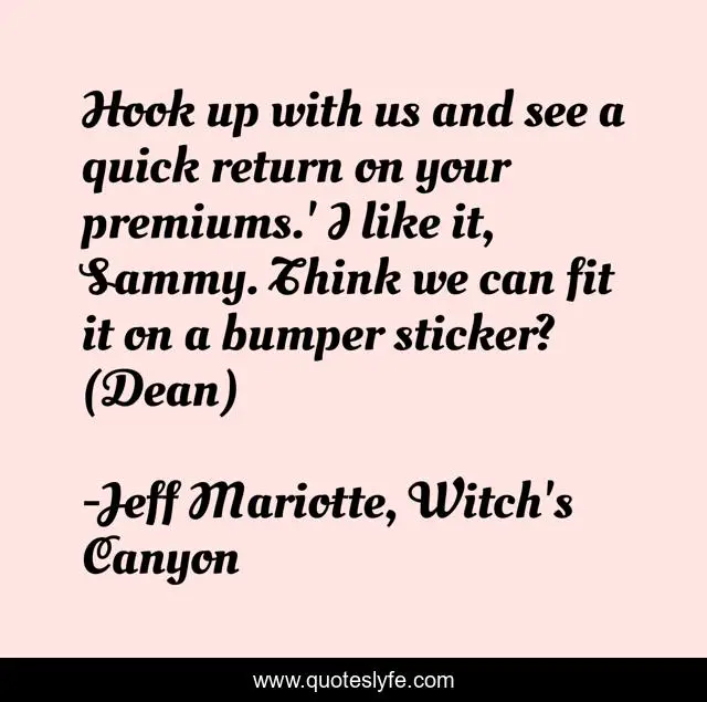 "Jeff Mariotte, Witch's Canyon Quotes." Quoteslyfe.com, 2025. Fri. 05 Dec. 2025. <https://www.quoteslyfe.com/quote/Hook-up-with-us-and-see-a-231885>.