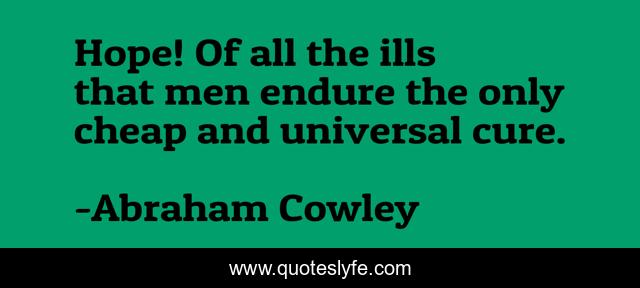 This page presents the quote "Hope! Of all the ills that men endure the only cheap and universal cure.". Author of this quote is Abraham Cowley. .