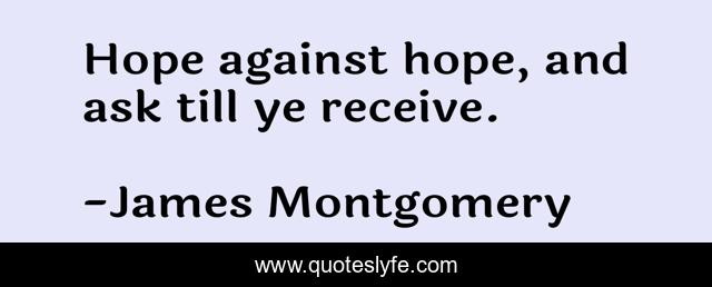 This page presents the quote "Hope against hope, and ask till ye receive.". Author of this quote is James Montgomery. This quote is about ask, receive, till,.