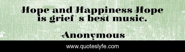 This page presents the quote "Hope and Happiness Hope is grief's best music.". Author of this quote is Anonymous. .