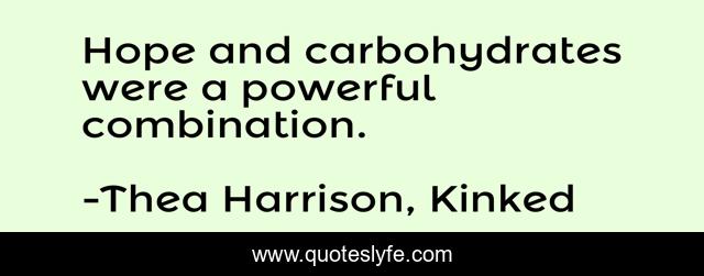 "Thea Harrison, Kinked Quotes." Quoteslyfe.com, 2025. Sat. 06 Dec. 2025. <https://www.quoteslyfe.com/quote/Hope-and-carbohydrates-were-a-powerful-combination-168243>.
