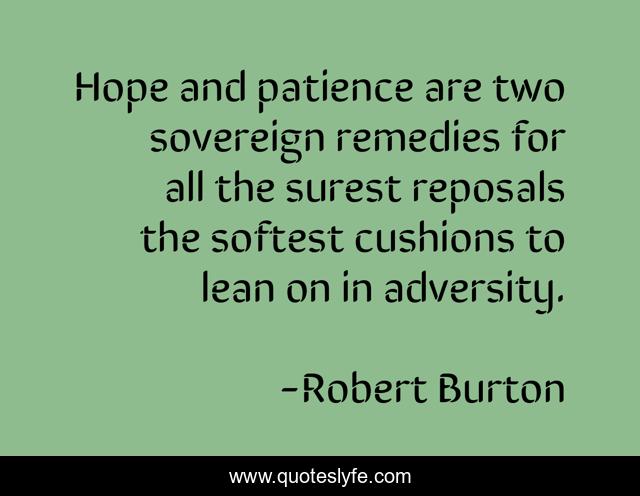 "Robert Burton Quotes." Quoteslyfe.com, 2025. Mon. 08 Dec. 2025. <https://www.quoteslyfe.com/quote/Hope-and-patience-are-two-sovereign-remedies-263301>.