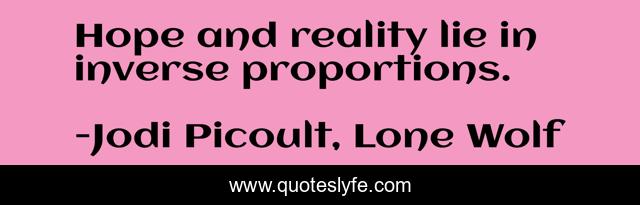 This page presents the quote "Hope and reality lie in inverse proportions.". Author of this quote is Jodi Picoult, Lone Wolf. This quote is about hope, reality,.