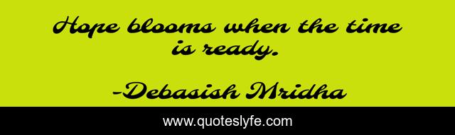 This page presents the quote "Hope blooms when the time is ready.". Author of this quote is Debasish Mridha. This quote is about life, love, knowledge, inspirational, intelligence, philosophy, wisdom, quotes, affection,.