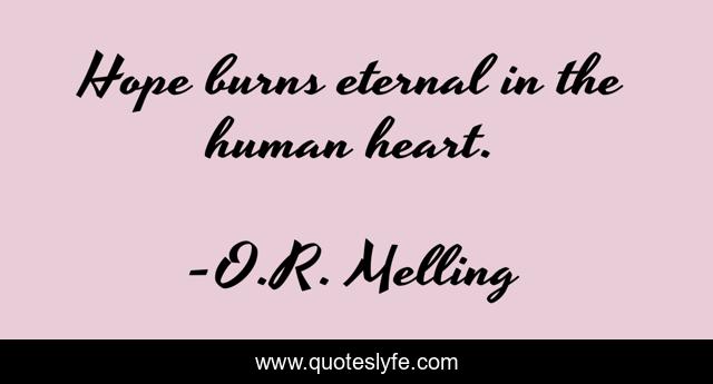 This page presents the quote "Hope burns eternal in the human heart.". Author of this quote is O.R. Melling. .