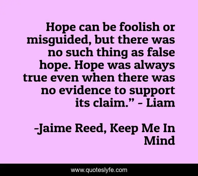 "Jaime Reed, Keep Me In Mind Quotes." Quoteslyfe.com, 2025. Sat. 06 Dec. 2025. <https://www.quoteslyfe.com/quote/Hope-can-be-foolish-or-misguided-but-92612>.