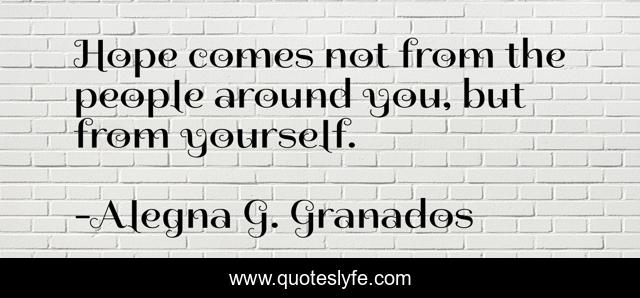 "Alegna G. Granados Quotes." Quoteslyfe.com, 2025. Fri. 05 Dec. 2025. <https://www.quoteslyfe.com/quote/Hope-comes-not-from-the-people-around-19708>.
