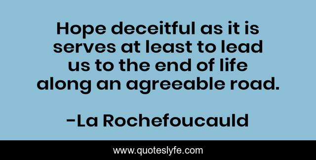 This page presents the quote "Hope deceitful as it is serves at least to lead us to the end of life along an agreeable road.". Author of this quote is La Rochefoucauld. .