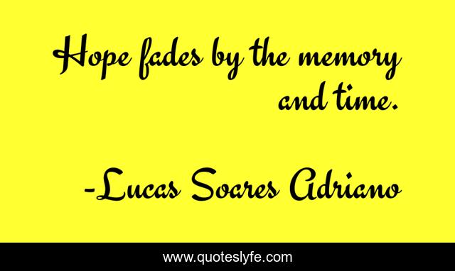 "Lucas Soares Adriano Quotes." Quoteslyfe.com, 2025. Fri. 05 Dec. 2025. <https://www.quoteslyfe.com/quote/Hope-fades-by-the-memory-and-time-34103>.