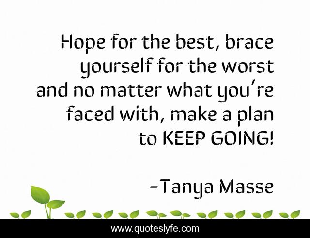 "Tanya Masse Quotes." Quoteslyfe.com, 2025. Mon. 08 Dec. 2025. <https://www.quoteslyfe.com/quote/Hope-for-the-best-brace-yourself-for-105745>.