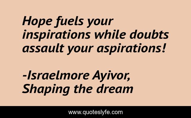 "Israelmore Ayivor, Shaping the dream Quotes." Quoteslyfe.com, 2025. Sun. 07 Dec. 2025. <https://www.quoteslyfe.com/quote/Hope-fuels-your-inspirations-while-doubts-assault-193292>.