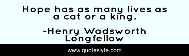 This page presents the quote "Hope has as many lives as a cat or a king.". Author of this quote is Henry Wadsworth Longfellow. .