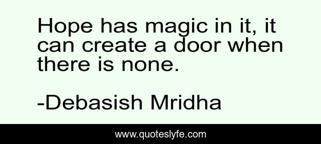 This page presents the quote "Hope has magic in it, it can create a door when there is none.". Author of this quote is Debasish Mridha. This quote is about life, love, knowledge, inspirational, intelligence, philosophy, wisdom, quotes, affection,.