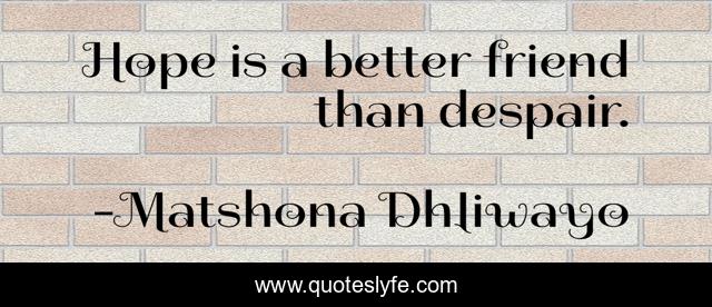 "Matshona Dhliwayo Quotes." Quoteslyfe.com, 2025. Fri. 05 Dec. 2025. <https://www.quoteslyfe.com/quote/Hope-is-a-better-friend-than-despair-121103>.