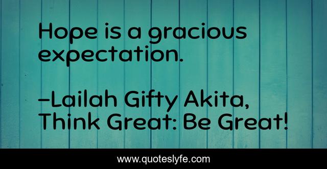 "Lailah Gifty Akita, Think Great: Be Great! Quotes." Quoteslyfe.com, 2025. Sun. 07 Dec. 2025. <https://www.quoteslyfe.com/quote/Hope-is-a-gracious-expectation-78438>.