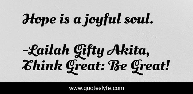 "Lailah Gifty Akita, Think Great: Be Great! Quotes." Quoteslyfe.com, 2025. Mon. 08 Dec. 2025. <https://www.quoteslyfe.com/quote/Hope-is-a-joyful-soul-227605>.
