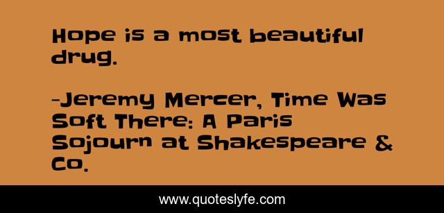 This page presents the quote "Hope is a most beautiful drug.". Author of this quote is Jeremy Mercer, Time Was Soft There: A Paris Sojourn at Shakespeare & Co.. This quote is about france-books, paris, poets, writers,.