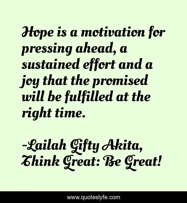 "Lailah Gifty Akita, Think Great: Be Great! Quotes." Quoteslyfe.com, 2025. Mon. 08 Dec. 2025. <https://www.quoteslyfe.com/quote/Hope-is-a-motivation-for-pressing-ahead-227603>.