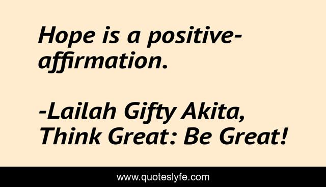"Lailah Gifty Akita, Think Great: Be Great! Quotes." Quoteslyfe.com, 2025. Mon. 08 Dec. 2025. <https://www.quoteslyfe.com/quote/Hope-is-a-positive-affirmation-178765>.
