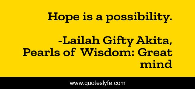 "Lailah Gifty Akita, Pearls of Wisdom: Great mind Quotes." Quoteslyfe.com, 2025. Fri. 05 Dec. 2025. <https://www.quoteslyfe.com/quote/Hope-is-a-possibility-147193>.