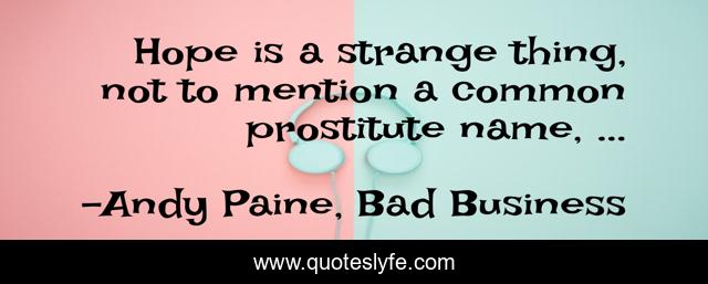 This page presents the quote "Hope is a strange thing, not to mention a common prostitute name, ...". Author of this quote is Andy Paine, Bad Business. This quote is about hope, humour,.