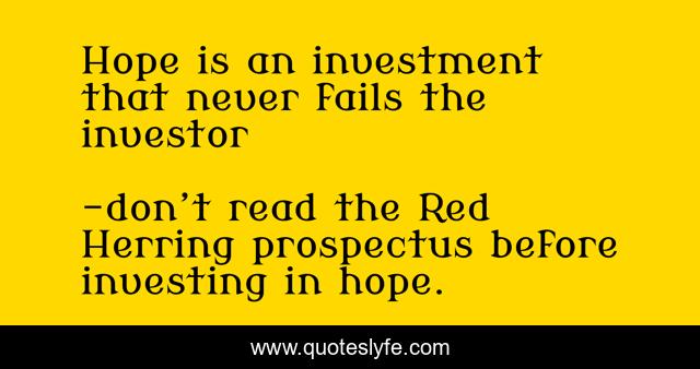 "don’t read the Red Herring prospectus before investing in hope. Quotes." Quoteslyfe.com, 2025. Sun. 07 Dec. 2025. <https://www.quoteslyfe.com/quote/Hope-is-an-investment-that-never-fails-20633>.