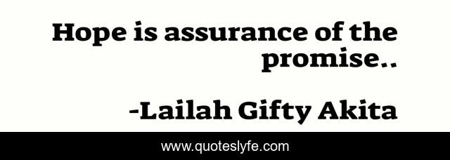 "Lailah Gifty Akita Quotes." Quoteslyfe.com, 2025. Fri. 05 Dec. 2025. <https://www.quoteslyfe.com/quote/Hope-is-assurance-of-the-promise-121447>.