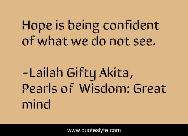 "Lailah Gifty Akita, Pearls of Wisdom: Great mind Quotes." Quoteslyfe.com, 2025. Mon. 08 Dec. 2025. <https://www.quoteslyfe.com/quote/Hope-is-being-confident-of-what-we-85313>.