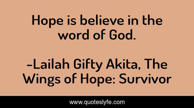 "Lailah Gifty Akita, The Wings of Hope: Survivor Quotes." Quoteslyfe.com, 2025. Fri. 05 Dec. 2025. <https://www.quoteslyfe.com/quote/Hope-is-believe-in-the-word-of-121411>.