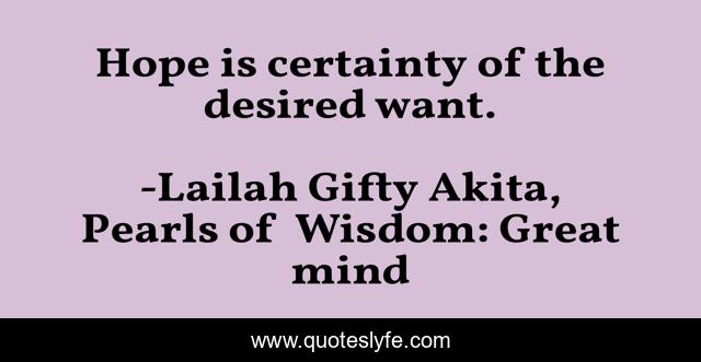 "Lailah Gifty Akita, Pearls of Wisdom: Great mind Quotes." Quoteslyfe.com, 2025. Sat. 06 Dec. 2025. <https://www.quoteslyfe.com/quote/Hope-is-certainty-of-the-desired-want-140443>.
