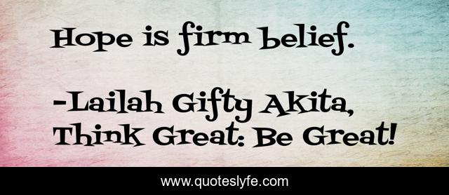 "Lailah Gifty Akita, Think Great: Be Great! Quotes." Quoteslyfe.com, 2025. Mon. 08 Dec. 2025. <https://www.quoteslyfe.com/quote/Hope-is-firm-belief-148054>.