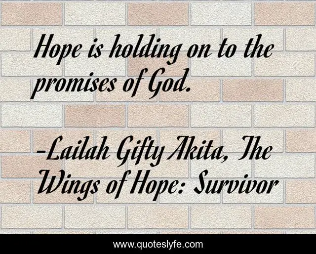 "Lailah Gifty Akita, The Wings of Hope: Survivor Quotes." Quoteslyfe.com, 2025. Sun. 07 Dec. 2025. <https://www.quoteslyfe.com/quote/Hope-is-holding-on-to-the-promises-14496>.