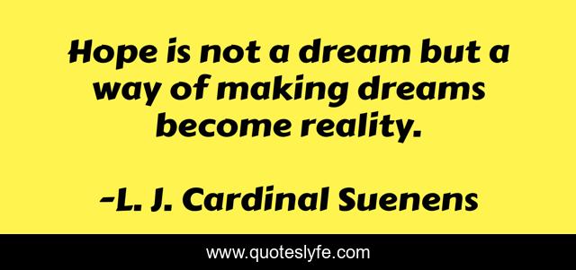 "L. J. Cardinal Suenens Quotes." Quoteslyfe.com, 2025. Sat. 06 Dec. 2025. <https://www.quoteslyfe.com/quote/Hope-is-not-a-dream-but-a-268513>.