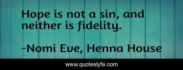 This page presents the quote "Hope is not a sin, and neither is fidelity.". Author of this quote is Nomi Eve, Henna House. .